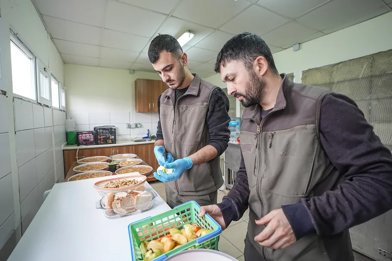 Günde 2 öğün elma, armut, havuç, ayva gibi meyvelerle birlikte fıstık ve merkezin fırınında özel olarak üretilen ekmeklerle beslenen maymunların gelişim süreçleri veteriner hekimlerce yakından takip ediliyor.