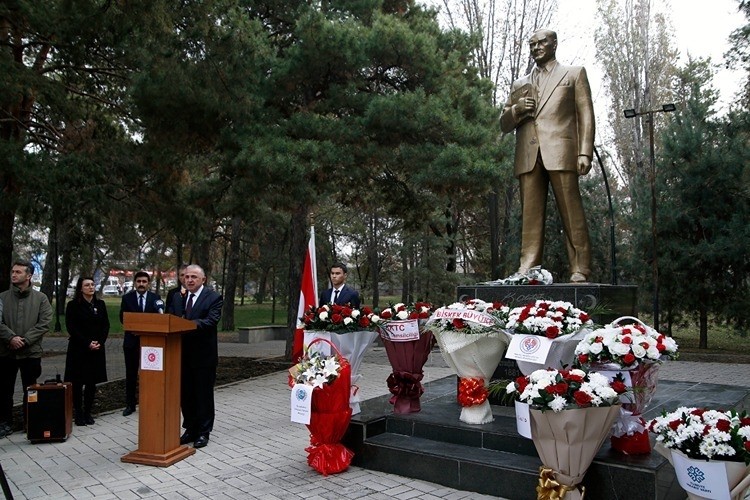 Türkiye'nin Bişkek Büyükelçisi Mekin Mustafa Kemal Ökem, törende yaptığı konuşmada, "Bugün 10 Kasım. Ulu Önder Mustafa Kemal Atatürk'ün aramızdan ayrılışının 87. yıl dönümü. Büyük Atatürk, ülküsü ve düşünceleriyle ve bize kazandırdıklarıyla her zaman bizimle ve aramızda olacaktır." dedi.