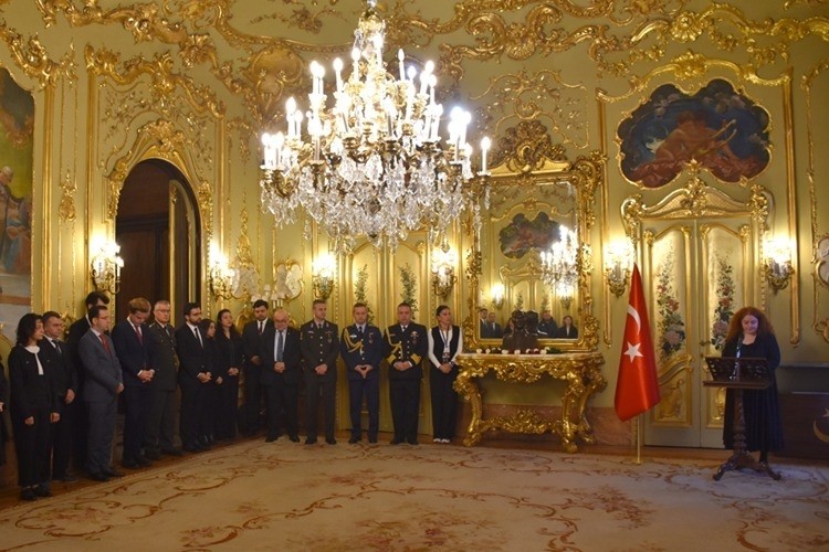 Törende konuşma yapan Büyükelçilik Birinci Müsteşarı Tuna Yücel Modrak, Cumhuriyet'in kurucusu Gazi Mustafa Kemal Atatürk'ü sonsuz saygı, sevgi ve minnetle andıklarını belirtti.