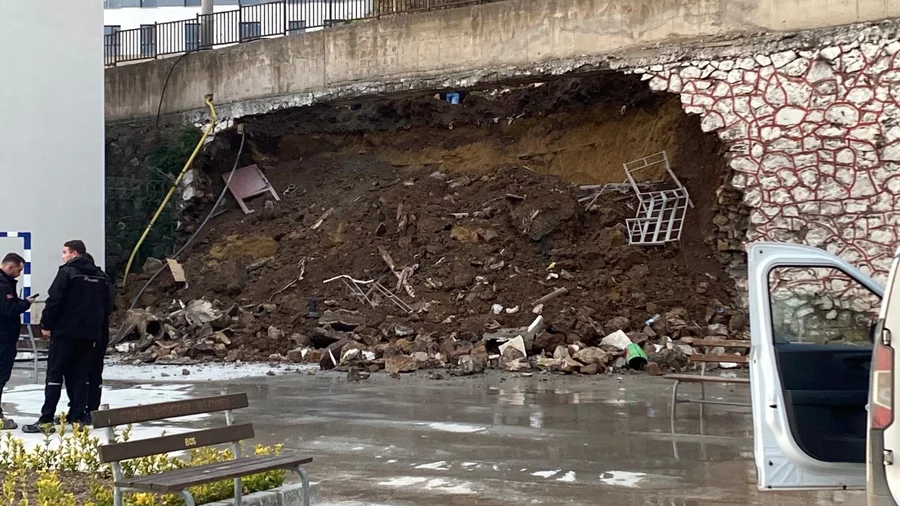 10 metrelik istinat duvarı okul bahçesine devrildi