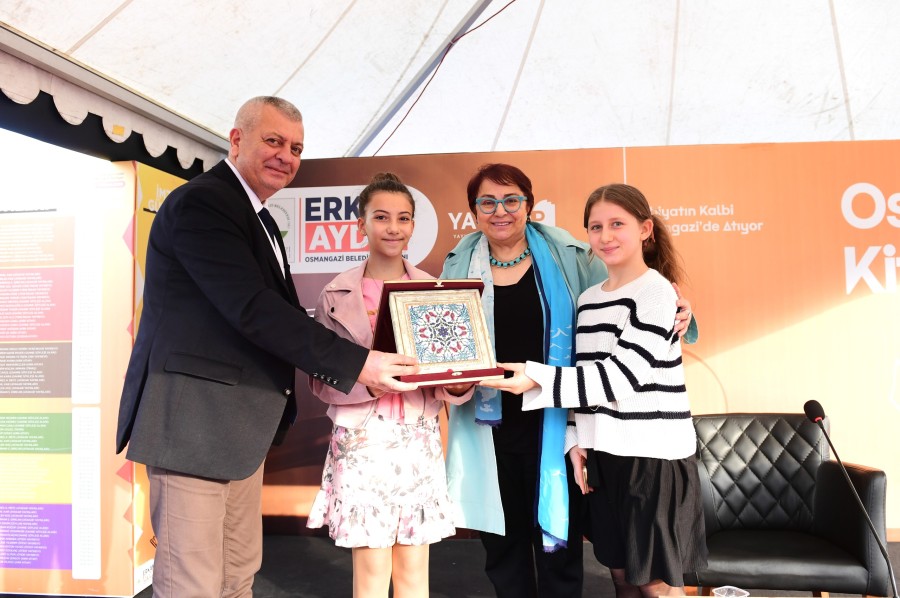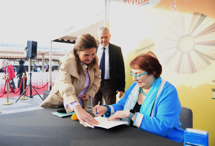 Osmangazi Meydanı'nda 1-9 Kasım tarihleri arasında düzenlenen Osmangazi Kitap Fuarı'na katılım gösteren kitapseverler, böylesi değerli bir fuarı Osmangazi'de düzenlediği için Osmangazi Belediye Başkanı Erkan Aydın'a teşekkür etti.