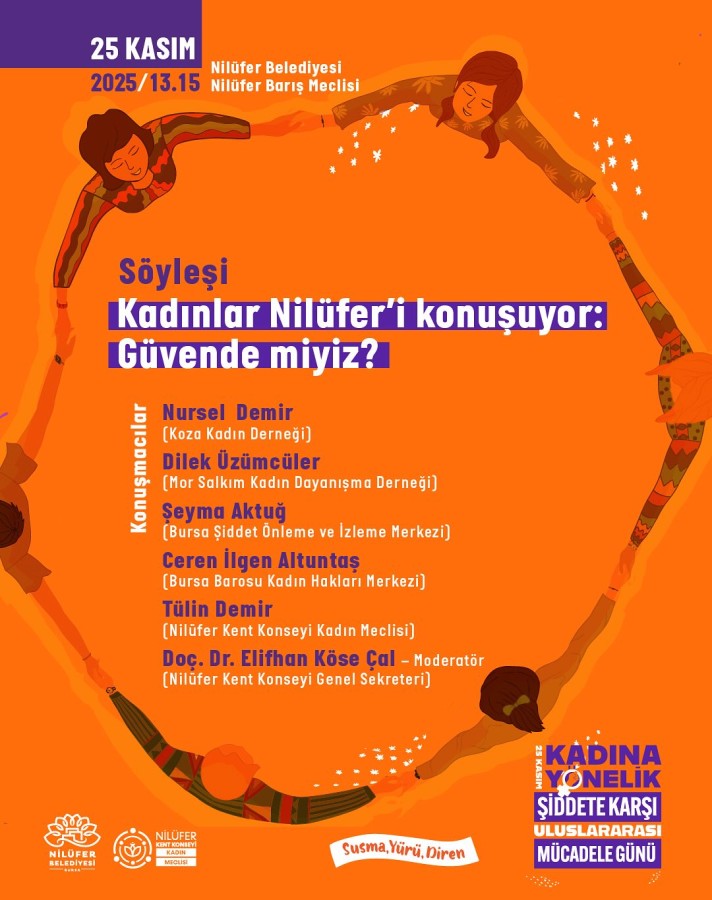 Etkinlikler kapsamında Nilüfer Barış Meclisi'nde "Kadınlar Nilüfer'i konuşuyor: Güvende miyiz?" söyleşisi düzenlenecek. Söyleşi, alanında uzman isimleri ve sivil toplum kuruluşu temsilcilerini bir araya getirecek.