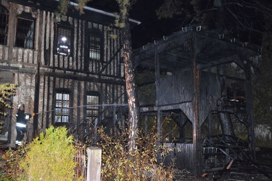 Alevler konağa da sıçradı, bölgeye itfaiye ekipleri sevk edildi. Söndürülen yangında kameriye ile evin dışında hasar oluştu.