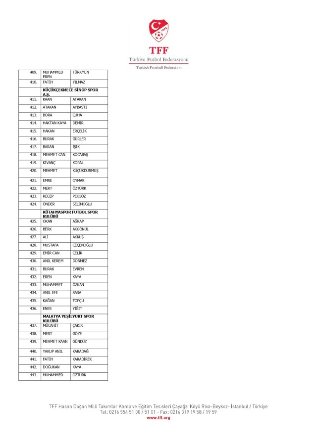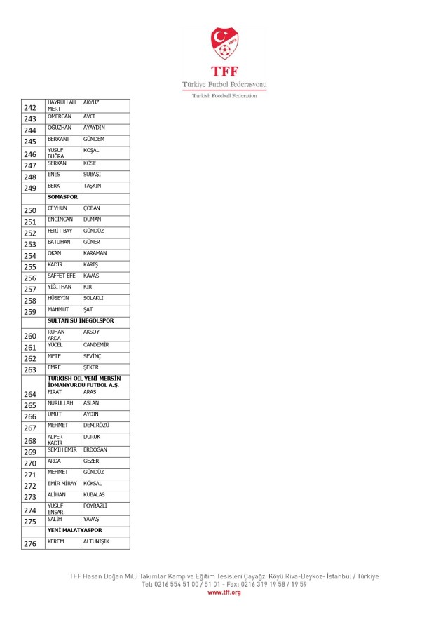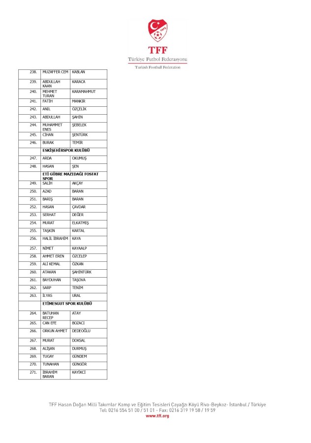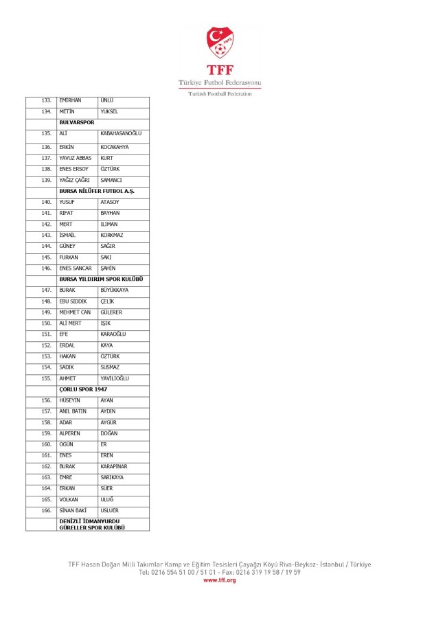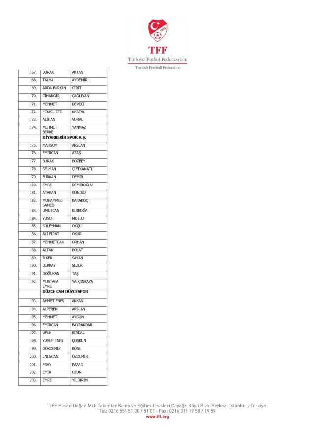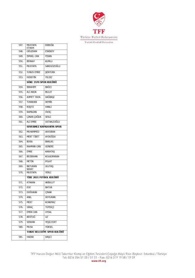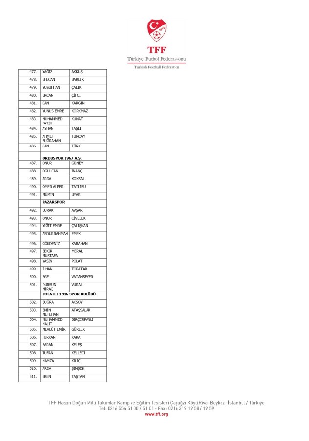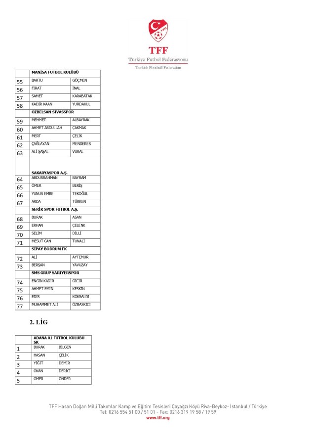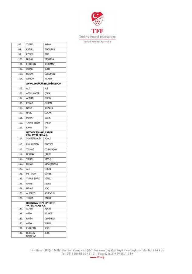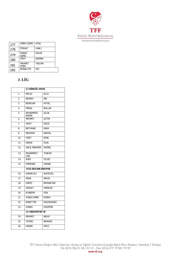 TFF Yönetim Kurulu'nun 10.11.2025 tarihli kararı ile TFF 2. Lig ve TFF 3. Lig müsabaka fikstürlerinin 2 hafta kaydırılmasına karar verilmiştir. TFF Süper Lig ve TFF 1. Lig müsabakaları daha önce ilan edildiği şekilde oynanmaya devam edecektir. Sadece tek bir kere bahis hareketi olduğu görülen 47 futbolcunun disiplin sevk işlemleri, telafisi mümkün olmayan zararlara sebebiyet vermemek adına ilgili kurumlardan gelecek cevabi evraklar neticesinde elde edilecek yeni delil ve bilgiler çerçevesinde değerlendirilecektir. Türkiye Futbol Federasyonu tarafından resmi kurumlarla yapılan yazışmalar devam etmekte olup bu gelecek cevaplara göre soruşturma genişletilerek devam edecektir. Futbol Disiplin Talimatı'nın 57. maddesi uyarınca PFDK'ya sevk edilen 1024 futbolcu aşağıda yer almaktadır" denildi.
