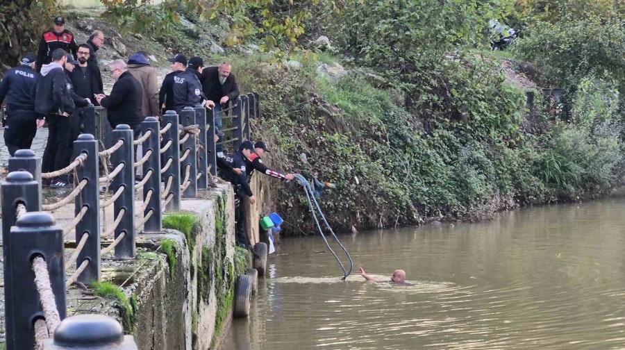 GÜNDEM, 22 Ekim 2025 Çarşamba, 19:34Edinilen bilgiye göre, Bartın Yalı mevkisinde ırmak kenarına gelen ve bir süre korkulukları tutan Y.S., eşiyle telefonla görüntülü görüşmesinin ardından ırmağa atladı. Polislerin tüm çabalarına rağmen suya atlayan şahıs, uzun uğraşlar sonucunda sudan çıkması konusunda ikna edildi