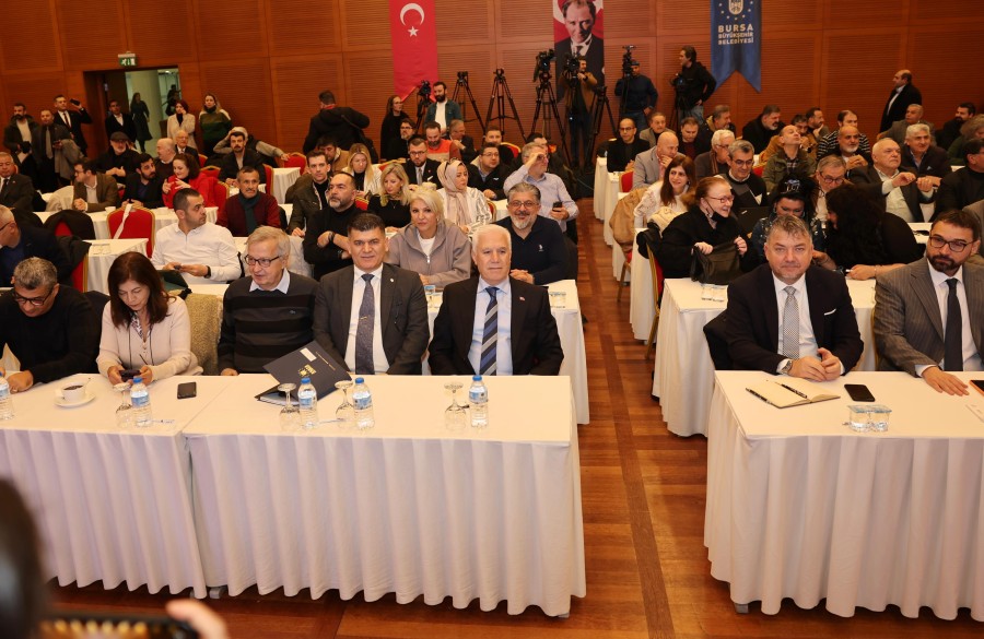Bursa'yı geleceğe hazırlarken ilk olarak kentin uzun vadeli yol haritasını çıkardıklarını belirten Başkan Mustafa Bozbey, Ekim 2024'te 2050 vizyonlu 1/100.000 Ölçekli Bursa Çevre Düzeni Planı çalışmalarını Bursa Planlama Ajansı çatısı altında başlattıklarını ifade eden Başkan Mustafa Bozbey, "Kent Anayasası çalışma sürecini 16 üniversiteden 40 akademisyenle yürüttük. Bu çalışmada ilçe belediyeleri, meslek odaları, kamu kurum ve kuruluşları, sivil toplum kuruluşları ve hemşehrilerimiz de yer aldı. Bugüne kadar 17 başlık altında incelediğimiz, analiz ve sentezlerini tamamladığımız planlama çalışmalarında; nüfus, göç, ulaşım, sanayi, tarım, iklim, kültürel miras ve sosyal yapı gibi konuları kapsayan toplam yeni 835 pafta ve 72 rapor, ajans bünyesinde hazırlandı. Yaklaşık 500 toplantı ve görüşme, 80 derinlemesine mülakat gerçekleştirildi. 17 ilçede muhtar çalıştayı, 3 aşamalı paydaş çalıştayları, sektör toplantıları ve binlerce hemşehrimizin katıldığı anketlerle Bursamızın geleceğini ortak akılla tartıştık" diye konuştu.