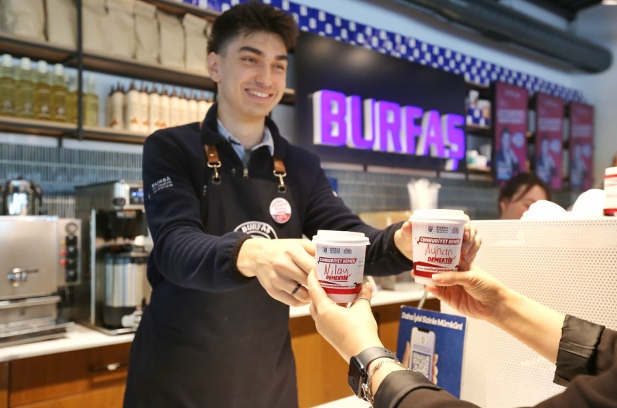 Eşi Seden Bozbey ile birlikte barista önlüklerini giyen Başkan Bozbey, Cumhuriyetin 102. yılına özel olarak hazırlanan 'Cumhuriyet Demek' temalı bardaklarda içecek ikramında bulundu. Vatandaşların isimlerini 'Cumhuriyet demek' temalı bardaklara yazan Başkan Mustafa Bozbey ve eşi Seden Bozbey, Atatürk'ün emanet ettiği Cumhuriyet'in sıcaklığını Bursalılarla birlikte paylaştı. Bu sene kutlamaların teması olan 'Cumhuriyet demek, hepimiz demek' sloganını da yazarak ikramda bulunan Başkan Bozbey ve eşi Seden Bozbey, kahve keyfini vatandaşlarla birlikte yaşadı.