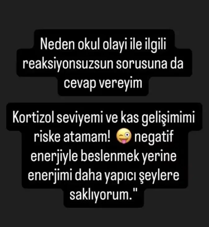 Bana gelen, 'Olayla ilgili paylaşım yap' baskılarına toplu bir cevap olarak verdiğim, ancak üslubu sebebiyle yanlış anlaşılmaya müsait olan ifadem üzerinden arzu ettikleri etkileşimi almış olabilirler. Beni tanıyanların bildiği üzere; bu tür acıların son bulması için sosyal medya histerisine değil, akla ve bilime sığınmalıyız. Bu tür iftiracılar yüzünden duruşumdan ödün vermeyeceğimi, üretmeye ve takipçilerimle paylaştığım disiplinli yaşam rutinime devam edeceğimi bilmenizi isterim.'