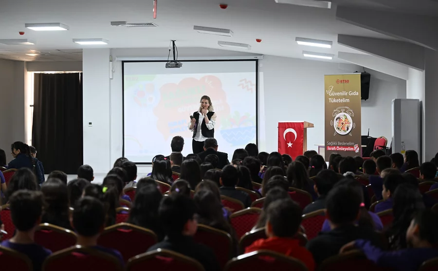 BURSA, 14 Nisan 2026 Salı, 11:02Çocukların güvenilir gıdalarla dengeli ve sağlıklı beslenmesini sağlamak ve israfın azaltılmasına destek olmak amacıyla BTSO öncülüğünde hayata geçirilen "Güvenilir Gıda Tüketelim- Sağlıklı Beslenelim, İsrafı Önleyelim" projesi Yıldırım Erguvan İlkokulu Konferans Salonu'ndaki açılış toplantısıyla başladı.