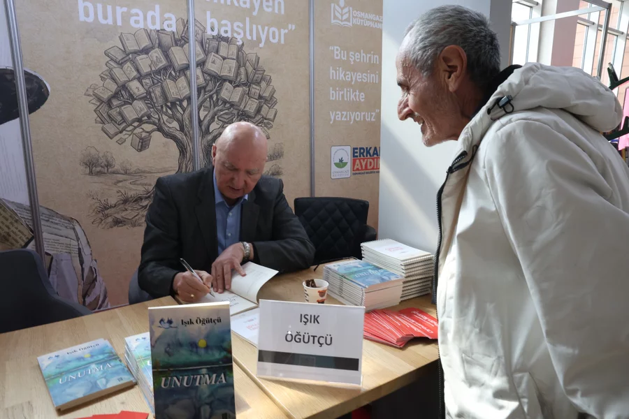 Osmangazi Belediyesi'nin standını da ziyaret eden Işık Öğütçü, burada kitapseverler ile bir araya gelerek imza dağıttı.