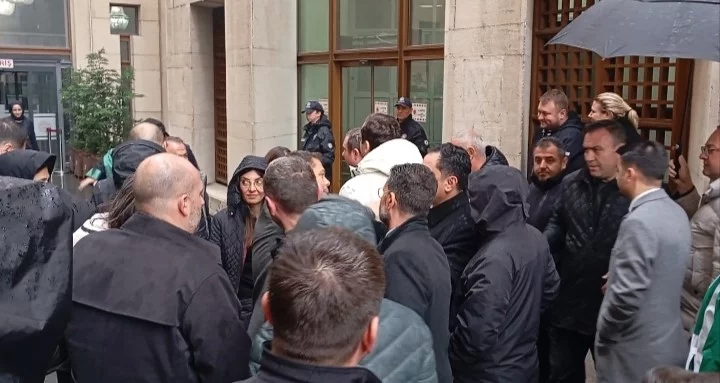 Başkan Bozbey, polis otobüsü ile H Tipi Cezaevi'ne götürülürken, adliye çevresinde bir grup sloganlarla Bozbey'e destek verdi.