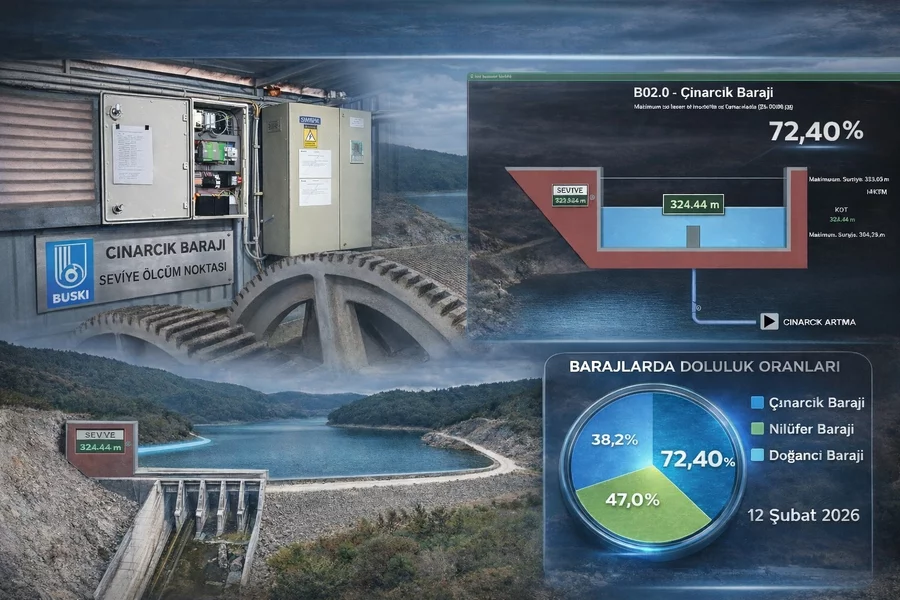 Arızalara veya sıkıntılı noktalara merkezden anında müdahale edilebilmesini sağlayan sistemle, Çınarcık Barajı'nın su seviye bilgisi ve doluluk oranı anlık olarak takip edilebiliyor.