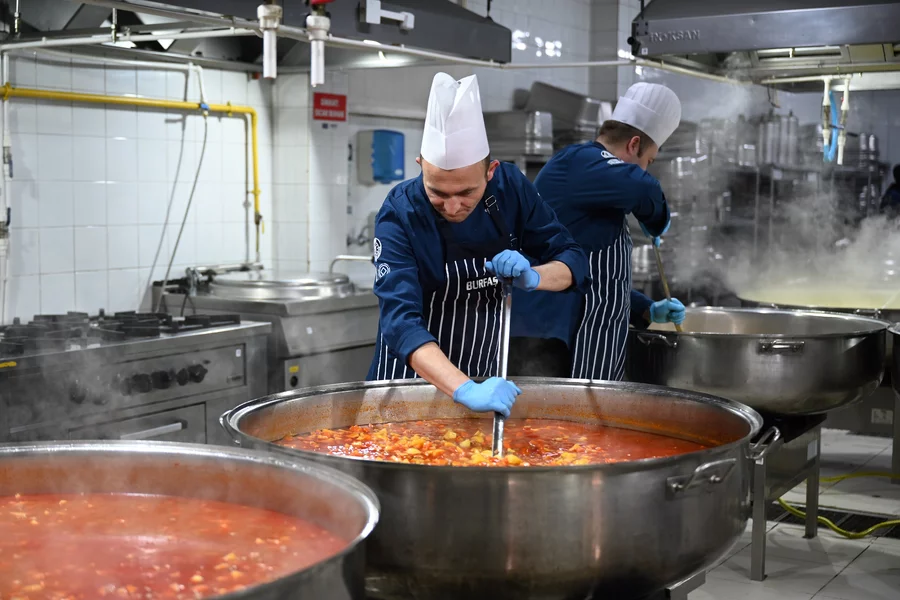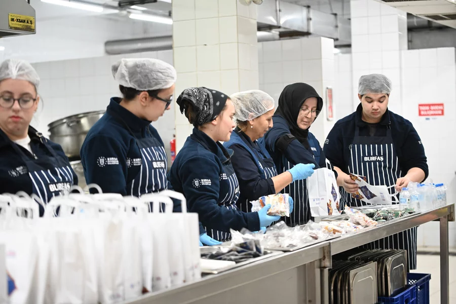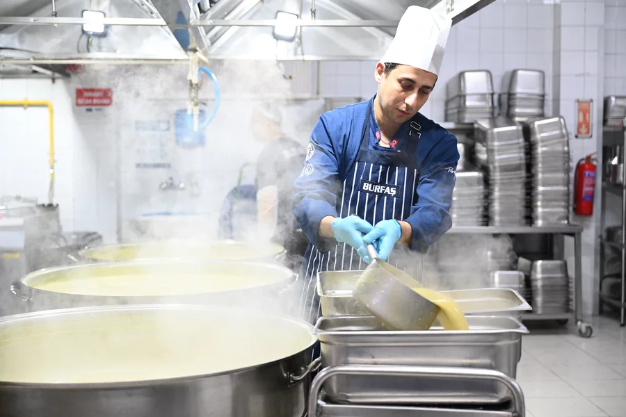 BURSA, 06 Mart 2026 Cuma, 11:27Bursa Büyükşehir Belediyesi, dayanışmanın çoğaldığı, paylaşmanın berekete dönüştüğü Ramazan ayında her gün vatandaşları iftar sofralarında buluşturuyor. Birbirinden lezzetli yemekler, BURFAŞ'ın Acemler'de bulunan ana mutfağında usta şefler tarafından özenle hazırlanıyor.