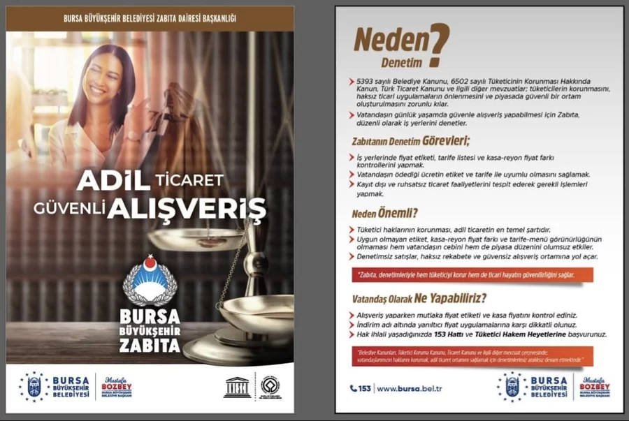 Kent Meydanı, Cumhuriyet Caddesi, Zafer Meydanı, Orhangazi Parkı ve Ulu Cami çevresinde vatandaşlara bilgilendirici broşürler dağıtan zabıta ekipleri, tüketicilerin bilinçlendirilmesini, adil ticaretin desteklenmesini ve güvenli alışveriş konusunda farkındalık oluşturulmasını amaçladı.