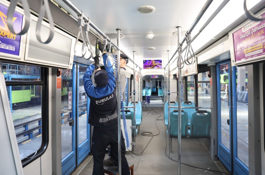 Bursa'nın daha yaşanabilir ve ulaşılabilir bir kent olması amacıyla çalışmalarını sürdüren Büyükşehir Belediyesi, iştirakleri aracılığıyla Türkiye'ye örnek olmaya da devam ediyor. Toplu taşıma hizmetlerini daha verimli ve sürdürülebilir hale getirmek için bakım ve onarım çalışmalarını kendi bünyesinde yürüten Büyükşehir Belediyesi'nin ulaşım şirketi BURULAŞ, tasarruf tedbirleri kapsamında araçlardaki dönüşümü de sağlıyor. Bu doğrultuda BURULAŞ ekipleri, BursaRay araçlarında kullanılan kısa tip florasanların üretimden kalkması ve araç iklimlendirme sistemlerinin verimsiz çalışması nedeniyle vagon içlerinde LED dönüşümünü gerçekleştirdi.