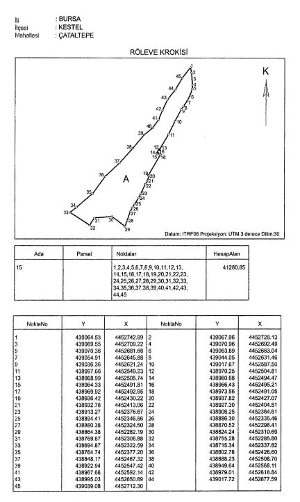 Kararda Bursa Kestel ilçesine bağlı Çataltepe ile Mudanya ilçesindeki Söğütpınar mevkiinde bulunan ve koordinatları belirlenen bazı alanlar da orman sınırları dışına çıkarılan yerler olarak açıklandı.