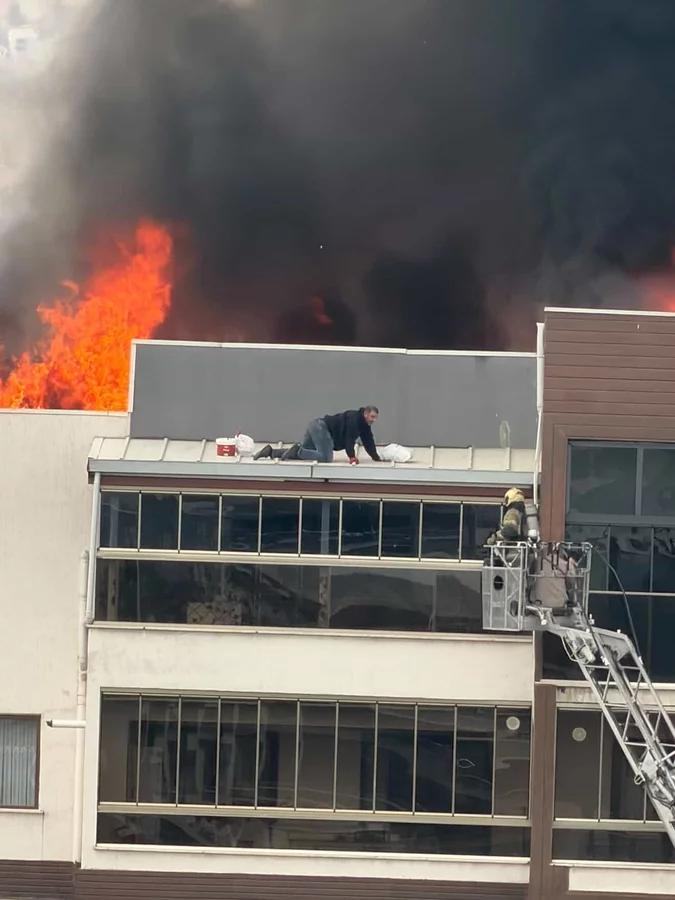 Yangında mahsur kalan bir çatı ustası ile dumandan etkilenen başka bir çalışan için zamanla yarış başladı. Kendini dışarıya atan kişi çatının ucunda kurtarılmayı bekledi.