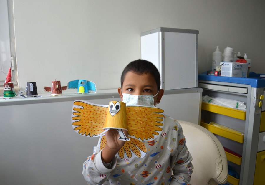 Babasının verdiği böbrekle sağlığına kavuşan Ubeydullah Fehmi Toğay da hastanede kaldığı süre boyunca karton bardaklardan tasarladığı oyuncaklarıyla oynadığını söyledi.