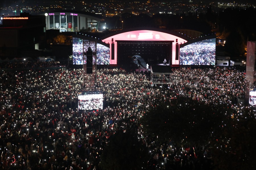Bursa Büyükşehir Belediyesi ve Nilüfer Belediyesi'nin birlikte düzenlediği Cumhuriyet Bayramı kutlamaları, DJ performansı devam etti. Müziğin ritmine kendini bırakan yüz binlerce Bursalı, telefon ışıklarıyla alanda adeta görsel şölen yaşattı. Ünlü sanatçı Edis'in sahneye çıkmasıyla da coşku doruğa çıktı. Edis'in muhteşem sahne performansı, bayram coşkusu yaşayanlara keyifli anlar yaşattı. Bursalıların birçok parçasına eşlik ettiği Edis'e, gecenin sonunda Bursa Büyükşehir Belediye Başkanı Mustafa Bozbey ve Nilüfer Belediye Başkanı Şadi Özdemir, Atatürk posteri, İznik çinisi ve çiçek vererek teşekkür etti.
