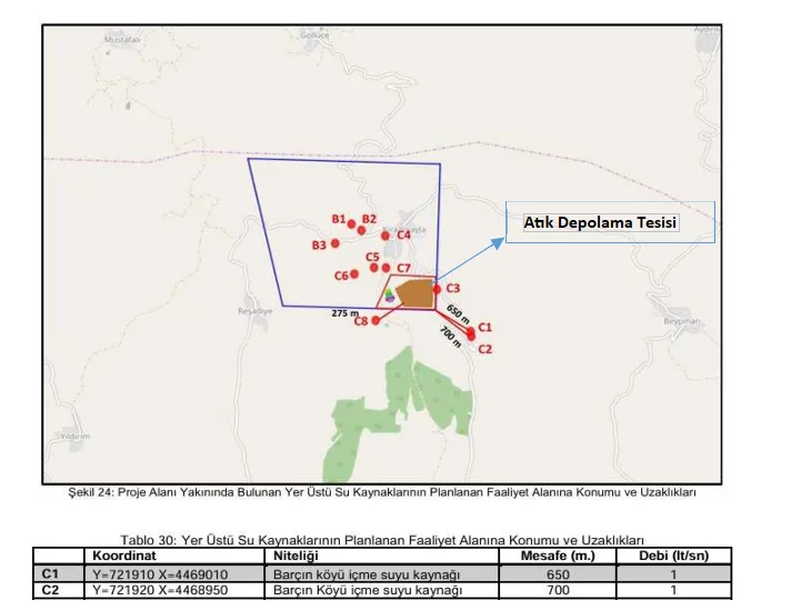 Nihai ÇED raporunda faaliyet alanının yaklaşık 650 m güneydoğusunda Barçın Köyü içme suyu kaynağı ve yaklaşık 700 m güneydoğusunda ise ishale hattı olduğu belirtilmektedir. Atık depolama tesisi, proje alanının güneyinde kalmakta olup söz konusu toprak kayması ile birlikte depolanan ağır metal içerikli atıkların söz konusu içme suyu kaynağına ve ishale hattına karışıp karışmadığının tespiti için gerekli analizler yapıldı mı? Analiz sonuçları kamuoyu ile paylaşılacak mı? Kaza sonrasında alandan ne kadar sıklıkla numune alındı? Yapılan analizler sonucunda kaza alanına en uzak kaç metre mesafede atık kontaminasyonu tespit edildi?