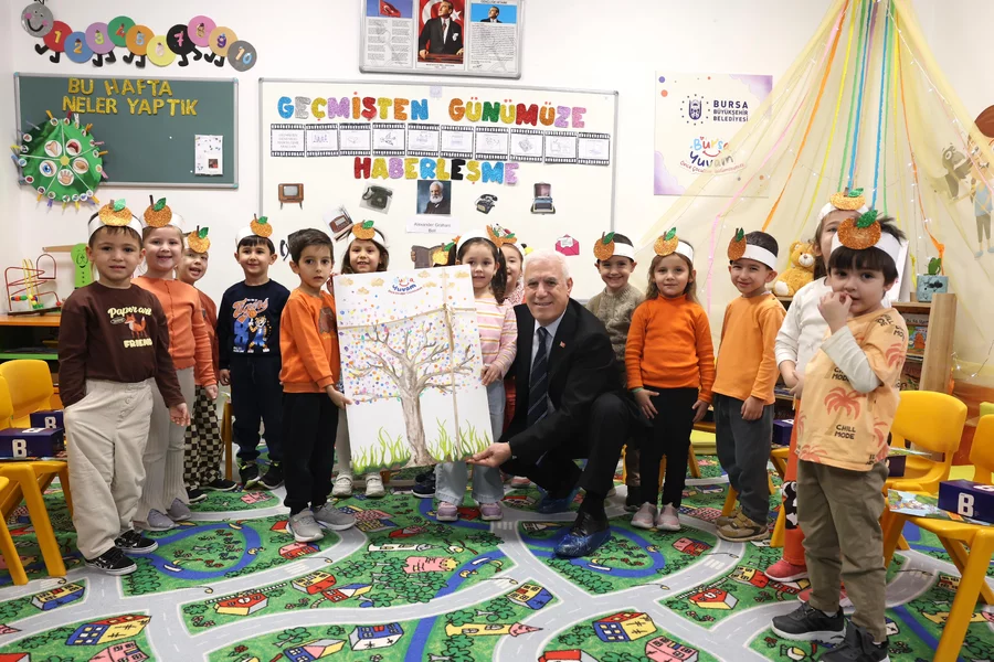 Bir yandan Bursa'yı dirençli ve afetlere hazırlıklı hale getirmek için projeler üreten Bursa Büyükşehir Belediyesi bir yandan da toplumsal farkındalığı artıracak çalışmalarını sürdürüyor. Bu kapsamda Alacahırka ve Üçevler Bursa Yuvam Çocuk Etkinlik Merkezlerini ziyaret eden Bursa Büyükşehir Belediye Başkanı Mustafa Bozbey, öğrencilerle bir araya geldi. Çocuklara afet bilincini artırmaya yönelik hazırlanan boyama kitapları hediye eden Başkan Bozbey, minik öğrencilerle birlikte boyama da yaptı. Öğrencilere süt ve meyve de ikram eden Başkan Bozbey, afetler hakkında bilgiler verdi.