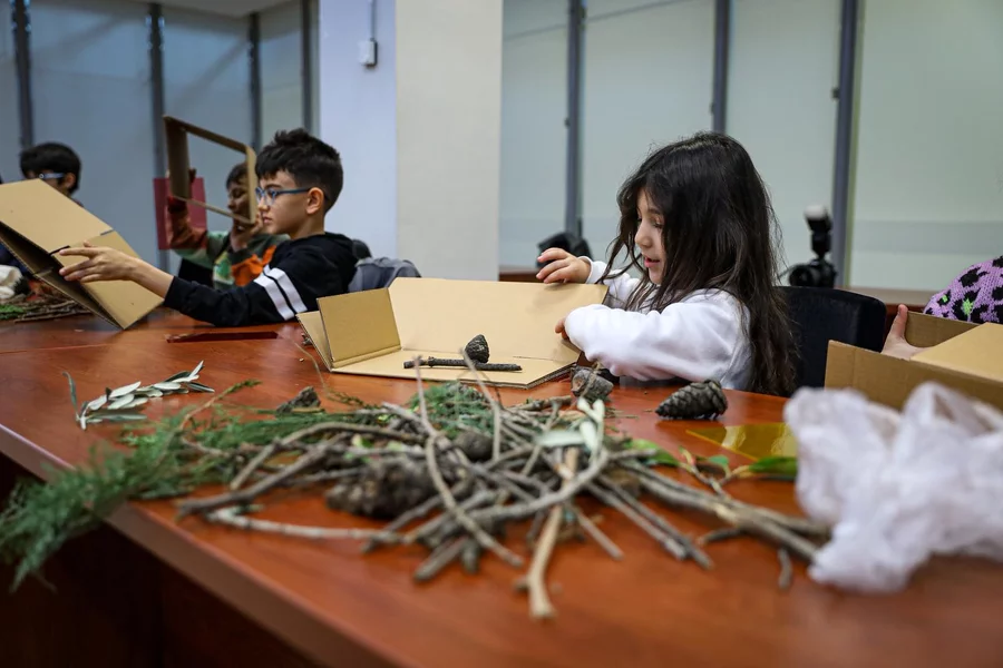 BURSA, 28 Şubat 2026 Cumartesi, 13:54Bursa Kent Konseyi Çınar Camlı Salon'da gerçekleştirilen 'Işık Avcıları: Pencereli Hayal Evi' atölyesine katılan 7-14 yaş aralığındaki çocuklar, 'Bir ev neden aydınlık olur?' ve 'Işık içeri nasıl girer?' sorularına yanıt aradı. Yüksek Mimar Sedef Nur Cankurt Semiz'in eşliğinde yapılan çalışmada, çocuklar ışığın mekân üzerindeki etkisini deneyimleyerek hayal dünyalarındaki evlerini tasarladı.