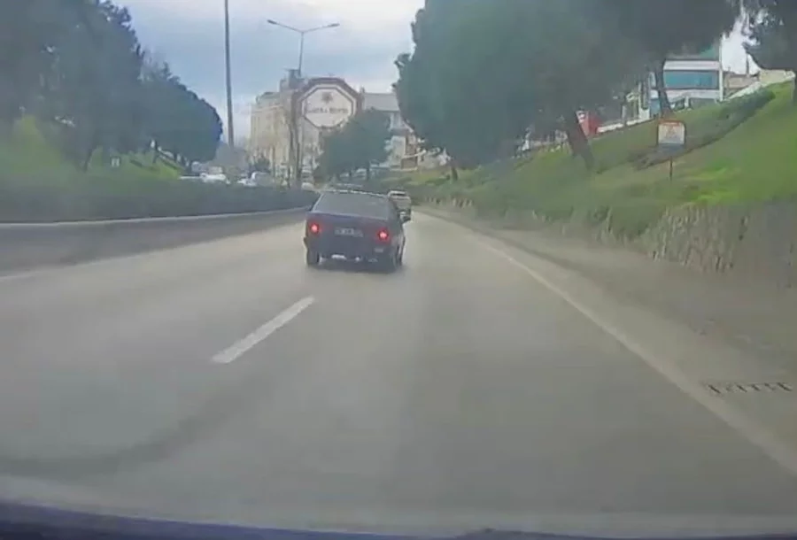 Yaşanan tehlikeli anlar trafikteki başka bir aracın kamerasına saniye saniye yansıdı.