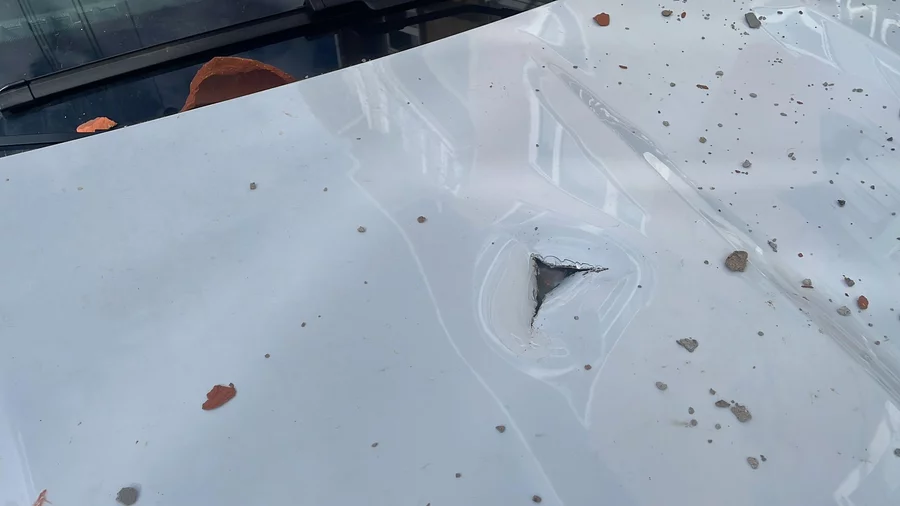Bacadan kopan beton ve tuğla parçalar evin önünde yol üzerinde park halinde bulunan 16 BZP 165 plakalı otomobilin üzerine düştü.