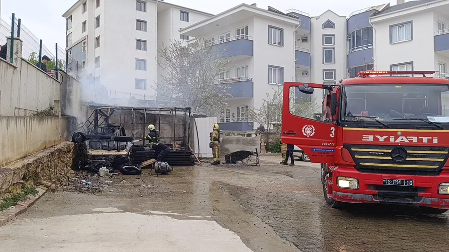 BURSA, 16 Nisan 2026 Perşembe, 15:46Bursa'nın İnegöl ilçesinde bir sitenin bahçesinde bulunan depoda yangın çıktı. Kısa sürede büyüyen yangında içeride bulunan tüp patlarken, yangın itfaiye ekipleri tarafından söndürüldü.