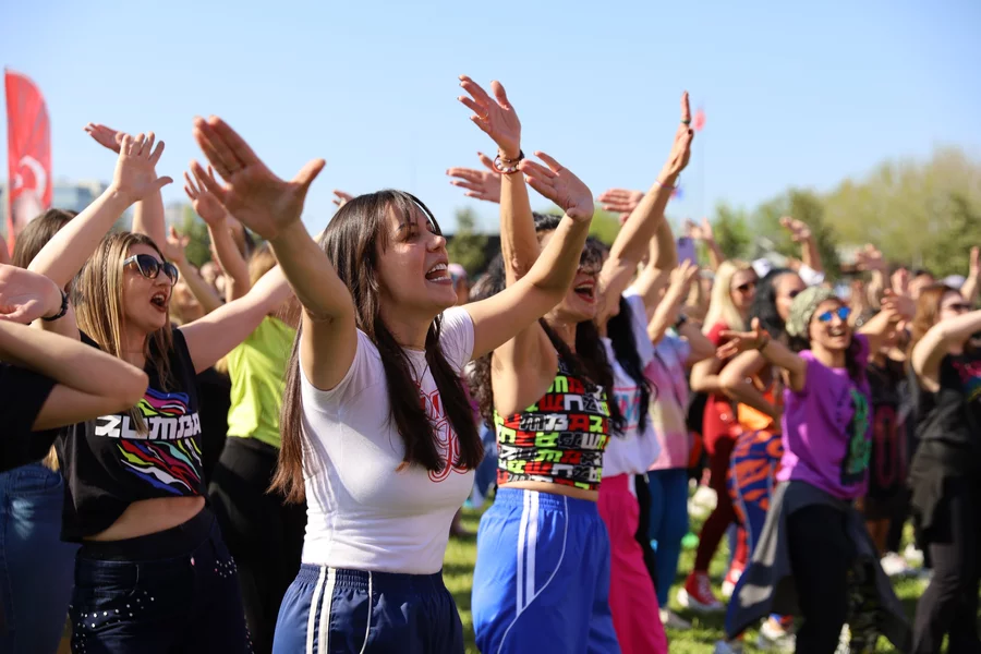 Açık havada gerçekleştirilen etkinlik boyunca katılımcılar, tempolu müzikler eşliğinde hareket ederek günlük yaşamın stresinden uzaklaştı. Etkinlik alanında oluşan coşku ve yüksek enerji, izleyenlere de keyifli anlar yaşattı.