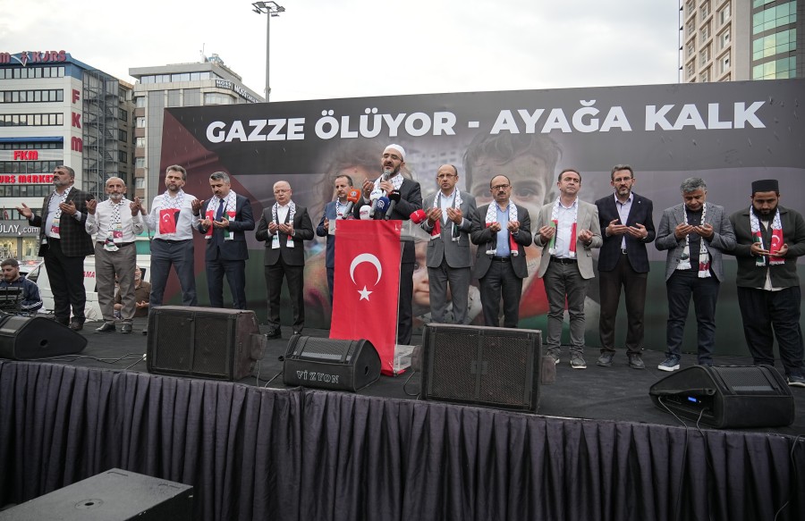 Grup adına konuşan Murat Eryağan, "Hamaslı mücahidlerle görüştüğümüzde bizi gündemde tutun diyorlar. Bizden su ve ekmek istemiyorlar. Bizi gündemde tutun diyorlar. Biz de bugün onların bu isteklerini yerine getirmek için toplandık. Biz sizinle beraberiz gündemimizin birinci maddesi Gazze'dir. Gazze, bizim her şeyimiz. Biz 401 yıl Gazze ve Filistin'deydik. Bizi parçalayıp paramparça ettiler. Ya Rabbim, bizi eski günlerde olduğu gibi bizi aziz eyle. Bu zilletten tüm Müslüman kardeşlerimizi kurtar. Zulmün olduğu yerde tarafımızı belli etmek için buradayız. Zalimin karşısında, mazlumların yanında olduğumuz için buradayız. Kim olursa olsun zalime karşıyız. Kim olursa olsun mazlumun yanındayız. Gazze'nin yalnız olmadığını haykırmak için buradayız. Halkı Müslüman ülkelerin yöneticilerini liderlerini uyarmak ve harekete geçirmek için buradayız. Vicdanı olan herkesin ortak sesi olmak için buradayız. Siyonist mallarını çeşitli bahanelerle alanları, satanları uyarmak için buradayız. Bu işi sonuna kadar sürdüreceğiz. Bunların mallarını evimize, iş yerimize, çocuklarımıza giydirmeyeceğiz, kullandırmayacağız. Sadece Gazze değil, Doğu Türkistan, Arakan ve dünyanın dört bir yanında ne kadar mazlum ve mağdur varsa biz onların da yanındayız. Tarih bugünleri yazacak. Bugün susanları da haykıranları da yazacak. Biz susmadığımız için bugün bu meydanı doldurduk. Gazze düşmedi ve düşmeyecek. Yenilmedi, yenilmeyecek. Zafer er yada geç mazlumların olacak. Her kışın bir baharı, her gecenin bir sabahı vardır. Zafer yakındır ve inananların olacaktır" şeklinde konuştu.
