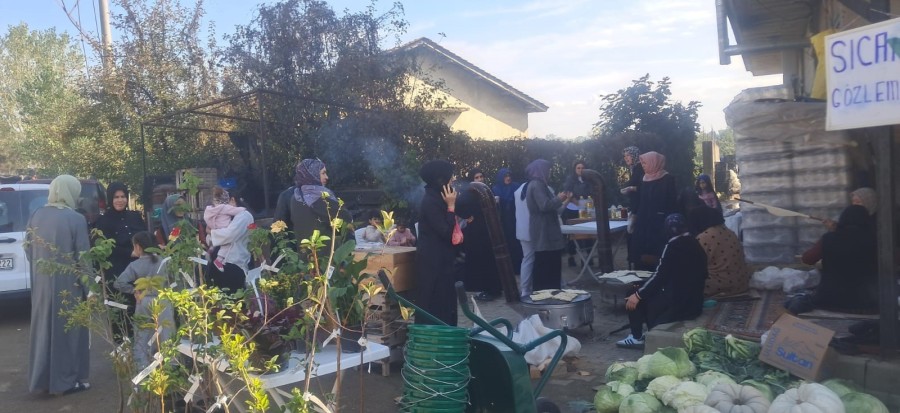 Gözleme, köfte, sebze ve meyve gibi yiyeceklerin yanı sıra mahalleli kadınların hazırladığı el işleri de satışa sunuldu.