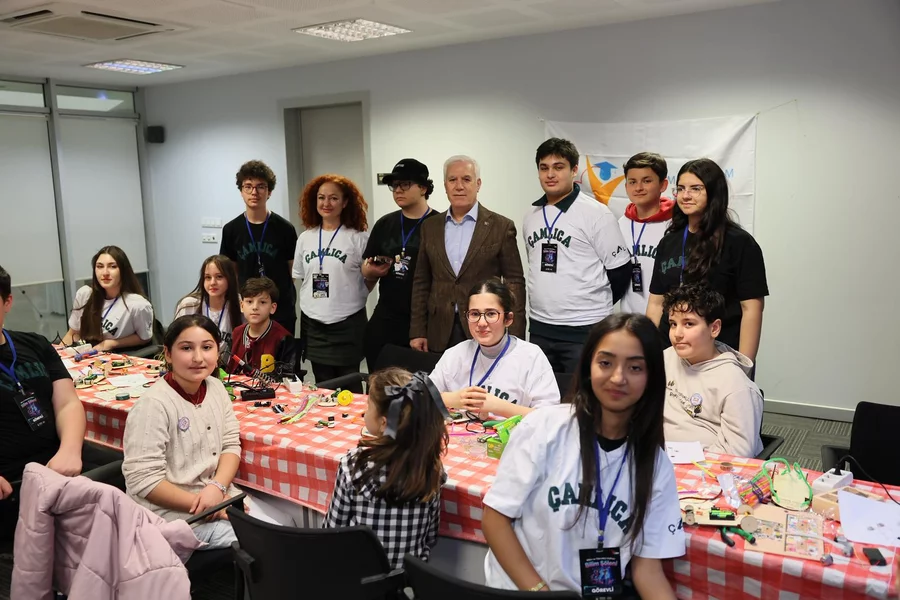 BURSA, 14 Mart 2026 Cumartesi, 18:15Atatürk Kültür Merkezi Merinos Yerleşkesi'nde düzenlenen 'Bilim ve Teknoloji Şöleni', yüzlerce öğrenciyi bir araya getirerek festival havasında geçti. 8-14 Mart Bilim ve Teknoloji Haftası kapsamında ikinci kez gerçekleştirilen etkinlik, bilim ve teknoloji meraklısı çocuklar ve gençler tarafından yoğun ilgi gördü. Bursa Büyükşehir Belediye Başkanı Mustafa Bozbey de etkinlik alanındaki atölyeleri gezerek öğrencilerle birlikte bilim yolculuğuna çıktı.