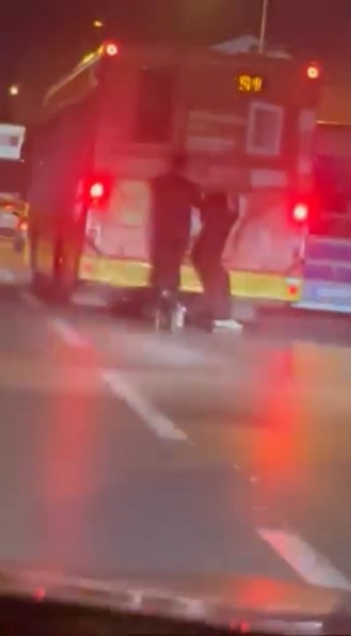 İlk kameralara yansıyan görüntülerde 5 patenli genç, trafikte ilerleyen otobüsünün arkasına tutunarak uzun süre bu şekilde yol aldı.