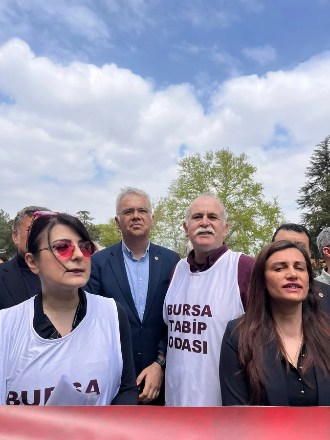 Ayrıca Bursa Veteriner Hekimler Odası, DİSK, KESK, TMMOB, Birlik ve Dayanışma Sendikası, BURSAHED, SES, Genel Sağlık-İş ve SA-HA DER üyeleri de eylemde yer aldı.
