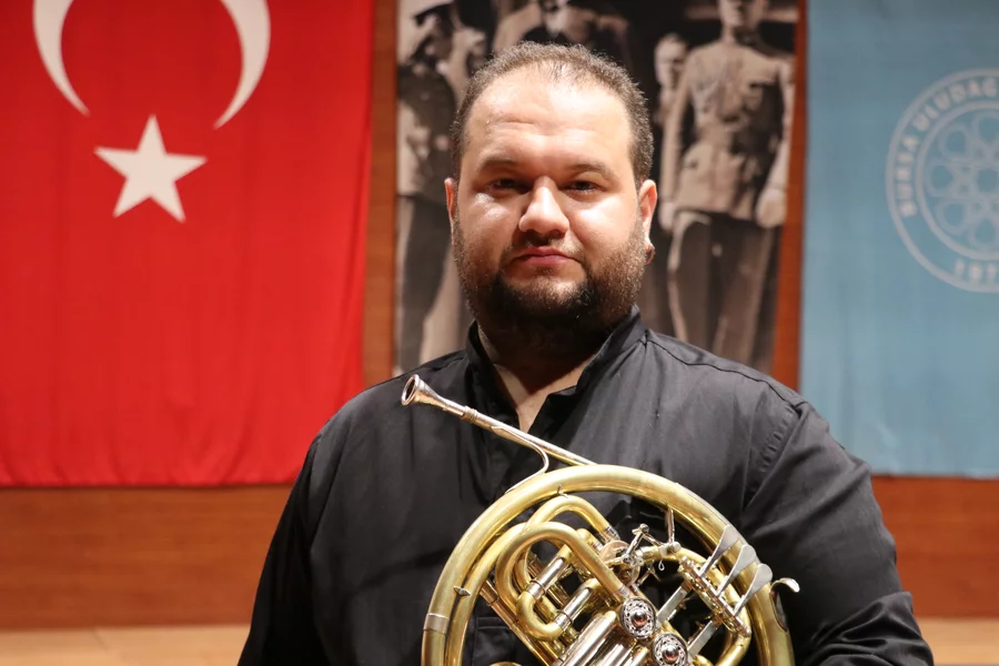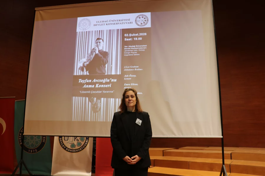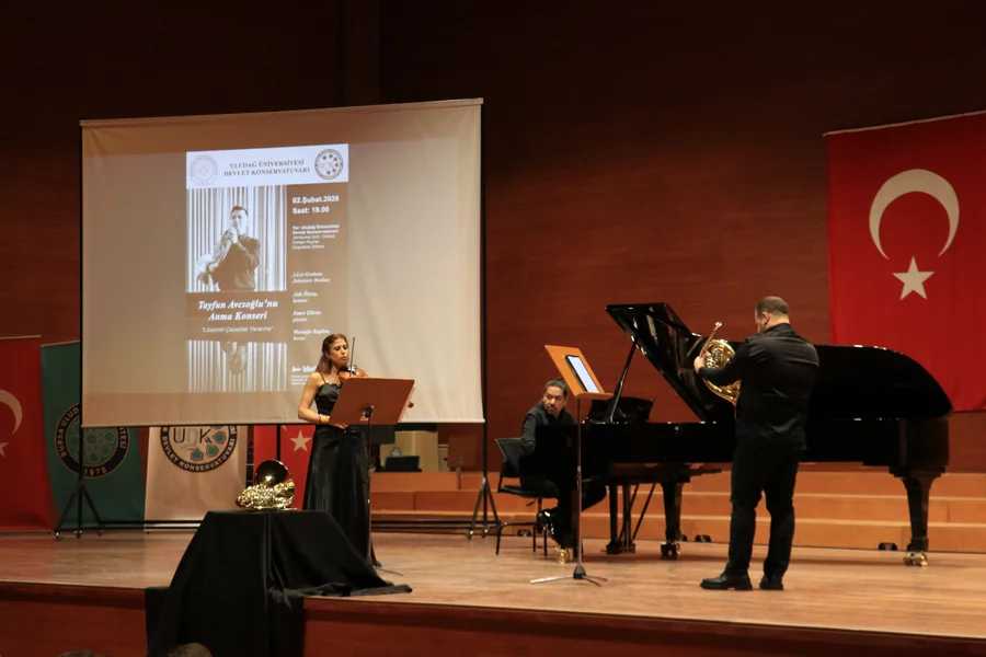 BURSA, 03 Şubat 2026 Salı, 11:25Lösemili çocuklar yararına düzenlenmesi planlanan konserde sahne alması beklenen korno sanatçısı Tayfun Avcıoğlu'nun vefatının ardından, anısına BUÜ Devlet Konservatuvarı Jandarma Uzman Onbaşı Cengiz Poyraz Uygulama Salonu'nda gerçekleştirilen konser boyunca Avcıoğlu'nu temsilen bir korno (salyangoz kabuğu gibi kıvrımlı, bakır borudan yapılan, üflemeli bir çalgı) sahnede yer aldı.