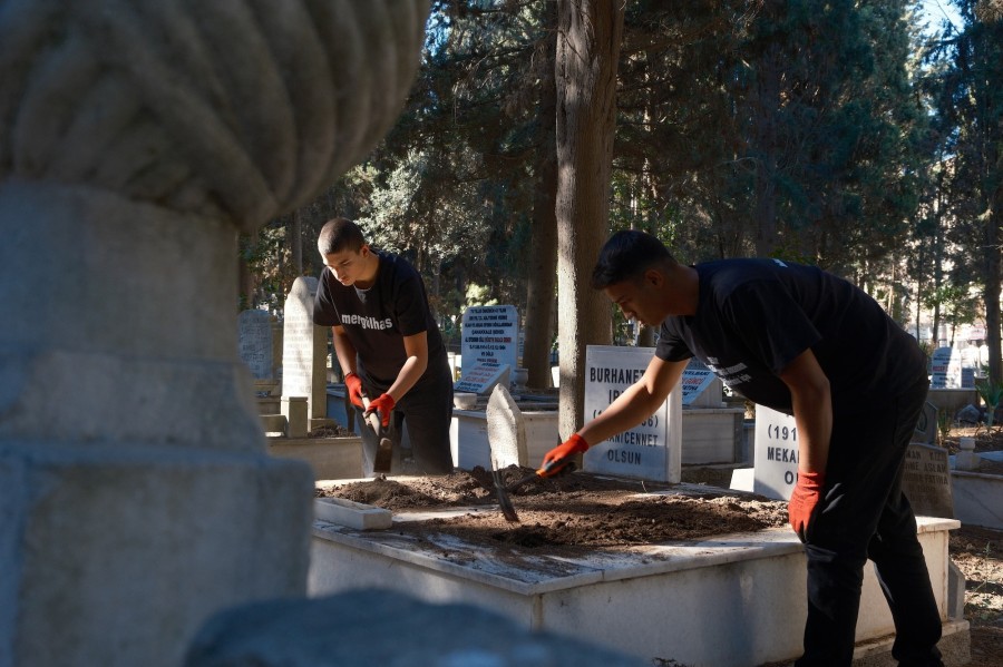 Bursa'da her gün onlarca mezar temizleyerek fenomen oldular