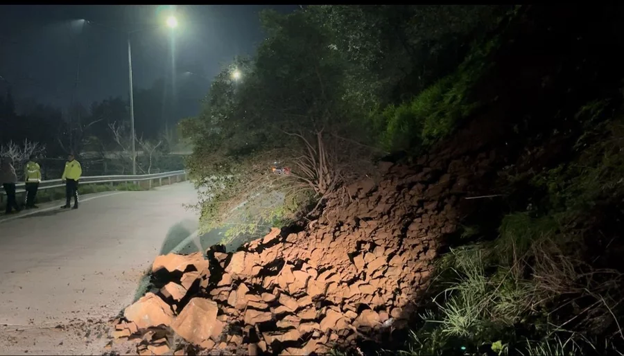 BURSA, 02 Mart 2026 Pazartesi, 10:28Bursa'nın Nilüfer ilçesinde meydana gelen toprak kayması nedeniyle, kayalıklar yola savruldu. Bir sürücü kazadan kıl payı kaçarken o anlar kameraya yansıdı.