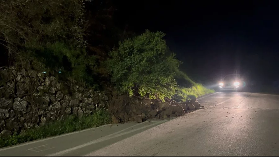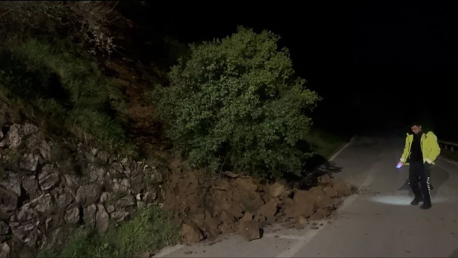 İstinat duvarının olmaması nedeniyle kopan kayalar yola savrulurken, o sırada bölgeden geçen bir sürücü, ani manevra yaparak kaza yapmaktan kurtuldu.