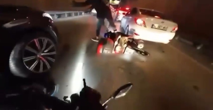 BURSA, 12 Kasım 2025 Çarşamba, 16:14Bursa'nın Osmangazi ilçesinde anayolda seyir halindeki bir motosikletli araçların arasından hızla ilerlerken, iki otomobilin arasında sıkıştı. Ani frene basan sürücüye, arkadan gelen bir başka motosikletli çarptı. Kaza anı ise kask kamerasına anbean yansıdı.