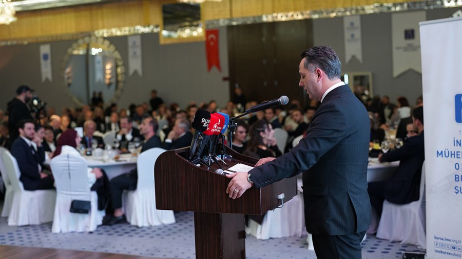 "Bu günlere sizlerin emekleri ve katkıları ile geldiğimizi hiçbir zaman unutmadık. Meslek çınarlarımız olan, meslekte 70,60, 50, 40 ve 25 yılını dolduran meslektaşlarımıza plaket ve belgelerini takdim edeceğimiz gecemizde, şubemizin bu günlere gelmesinde emeği geçen, destek veren ve bu gece aramızda bulunan geçmiş şube başkanlarımıza, yönetim kurulu üyelerimize ve katkı koyan tüm meslektaşlarımıza teşekkür ederiz. İMO Bursa Şube olarak bugüne kadar çözüm odaklı ve yapıcı bakış açısı ile kent sorunlarına çözüm önerilerimizi sunduk. Bursa'daki birçok projeye baktığımızda da akademik bakış açısının ne kadar önemli olduğunu anlayabiliyoruz. Kent yönetiminde, akademik odaların, sivil toplum kuruluşlarının ve vatandaşın taleplerini ve önerilerini almadan hareket ettiğinizde içinden çıkılamaz sorunlarla karşı karşıya kalınmaktadır. Bizler şehrimiz için mesleki deneyim ve bilgilerimizi paylaşmaya hazır olduğumuzu her alanda dile getiriyoruz. Kent yöneticilerimizin de alt yapıdan, üst yapıya, kentsel dönüşümden, ulaşıma kadar tüm yatırımlarda akademik bakış açısının önemi ve ihtiyacını unutmaması gerektiğini bir kez daha vurgulamak isterim. Bizler; Bursa hepimizin diyerek yola çıktığımız bu süreçte, her platformda dile getirdiğimiz gibi bir kez daha yüksek sesle vurgulamak isteriz ki kadim Bursa'nın yararına olmayan her konuda İMO Bursa Şubesi yapılan yanlışlara karşı durmaya devam edecektir. Kim yaparsa yapsın, bedeli ne olursa olsun, ben yaptım oldu uygulamalarına karşı sonuna kadar İMO Bursa Şube Yönetimi ve Kurulları olarak mücadele edeceğimizi bir kez daha ilan etmek isterim. Mesleğimizin ve Bursa'nın sorunlarına çözüm için sizlerin görüş, öneri ve katkılarının Şubemizin gücüne güç katacağını hatırlatmak istiyorum. Mesleğimiz ve Bursa'mız için dertlenen başta siz değerli meslektaşlarım olmak üzere tüm paydaşlarımızı güç birliğine davet ediyor ve diyorum ki Bursa hepimizin, hep birlikte hem mesleğimizi hem Bursa'mızı hak ettiği yere taşıyıp ayağa kaldıralım."