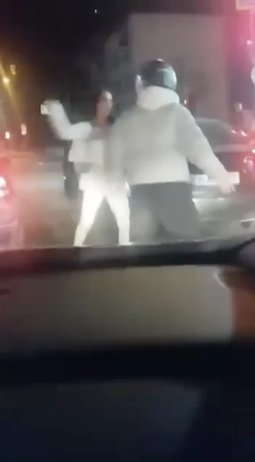 Bu sırada otomobildeki kadın sürücü, motosiklet sürücüsüne camdan yumruk attı ve aracından inerek tepki gösterdi. Motosiklet sürücüsü ise sözlü ve fiziki şiddete maruz kaldı.