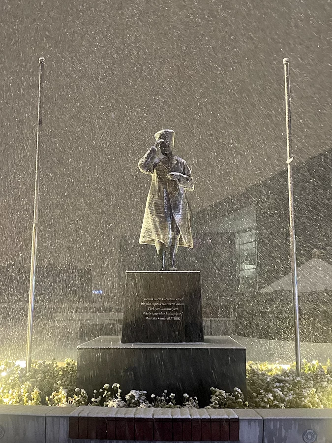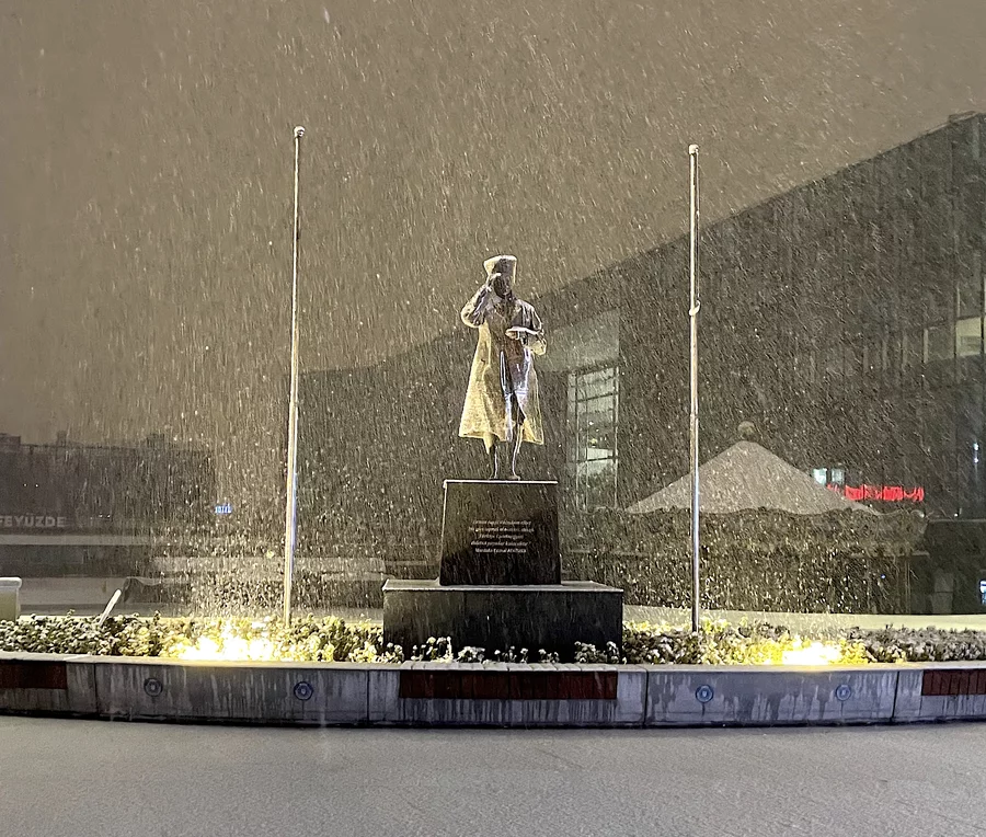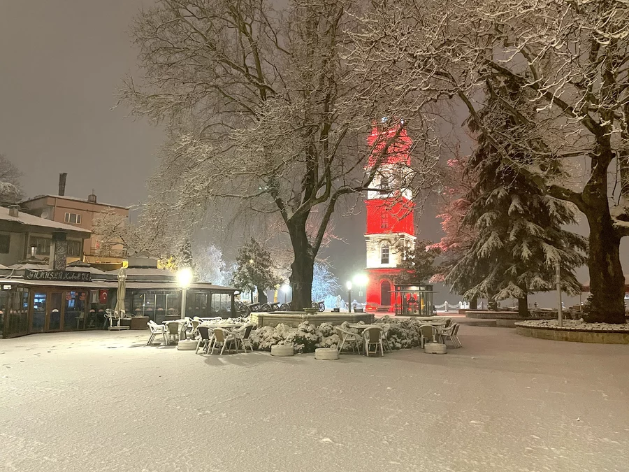 Özellikle kentin yüksek kesimlerinde sıcaklıkların daha da azalmasıyla birlikte kar örtüsü oluştu.