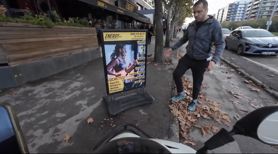 Edinilen bilgiye göre motosiklet sürücüsü, yol kenarında hatalı park eden bir araca kızarak tepki gösterdi.