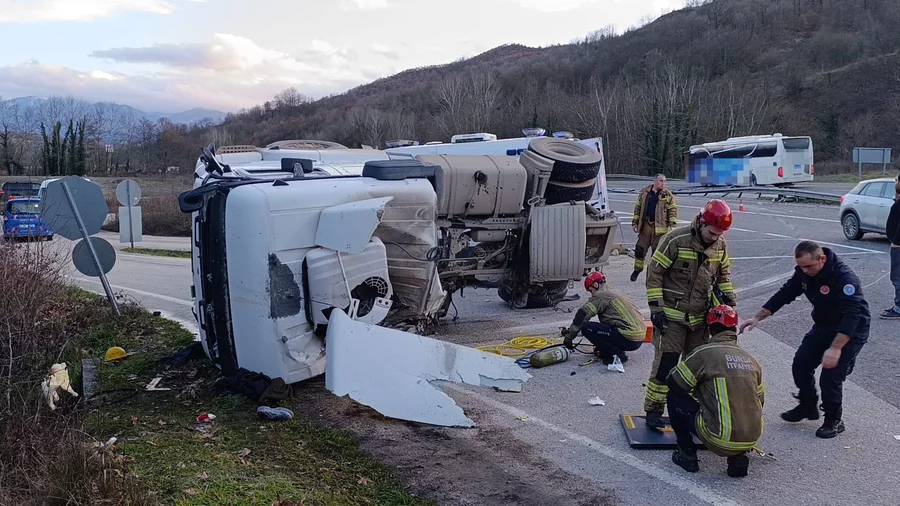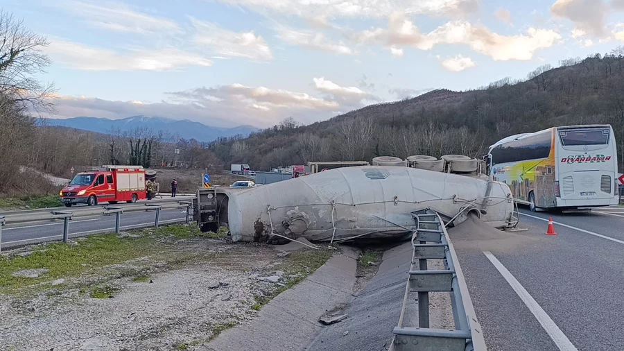 BURSA, 11 Şubat 2026 Çarşamba, 19:12Kaza, saat 17.30 sıralarında Bursa-Ankara karayolu üzeri kırsal Yeniköy mahallesi mevkiinde meydana geldi. Bozüyük'ten İnegöl'e seyir halinde olan Mehmet G. (65) yönetimindeki 16 AGK 90 plakalı beton tankeri, virajda sürücüsünün kontrolünden çıkarak devrildi. Tanker kısmı refüje fırlarken, çekici kısmı ise yolun diğer kısmına devrildi. Sürücü araçta sıkışarak ağır yaralandı.