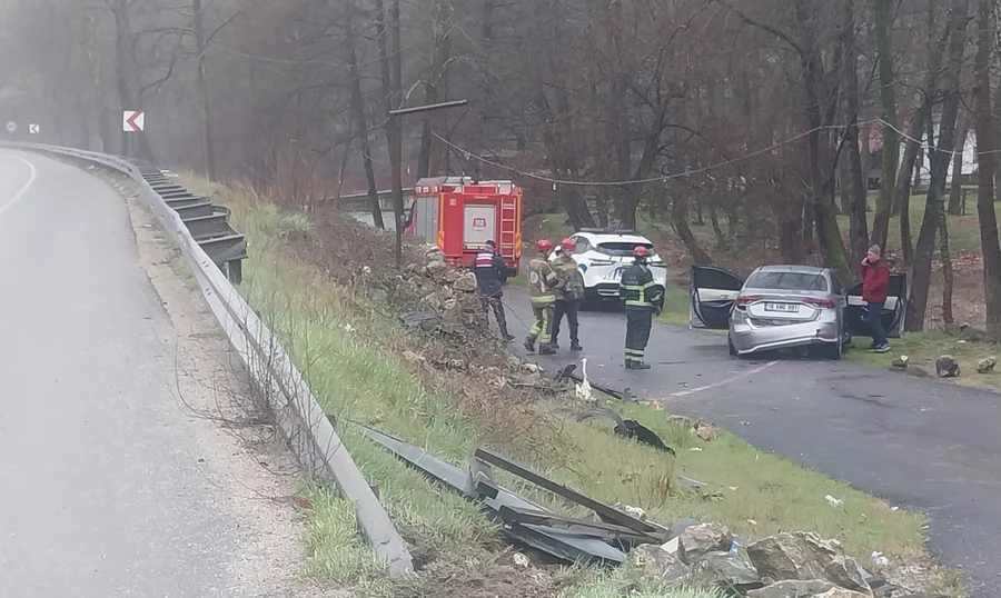 Kazada sürücü ve araçtaki eşi Şeyma A. (34), çocukları Sadık A. (11) ile 2 aylık Kerem A. yaralandı. Yaralılar, ambulansla İnegöl Devlet Hastanesine kaldırıldı.