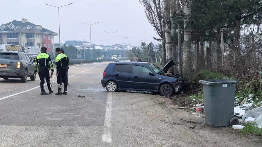 Bursa'da kontrolden çıkan otomobil kaldırıma ve ağaca çarptı: 2 yaralı