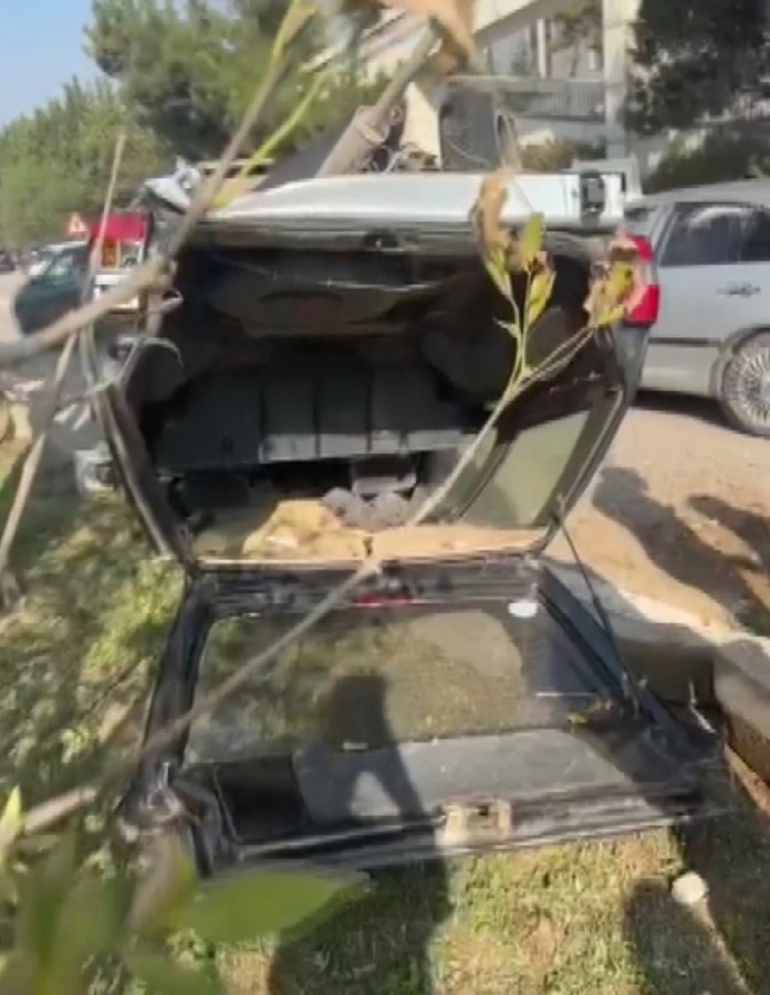 BURSA, 15 Ekim 2025 Çarşamba, 14:30Bursa'nın Nilüfer ilçesinde, İzmir Yolu üzerinde seyir halindeyken kontrolden çıkan otomobil orta refüje çarpıp takla attı. Kazada otomobil ters dönerken bir tekeri yerinden koparak yola savruldu.