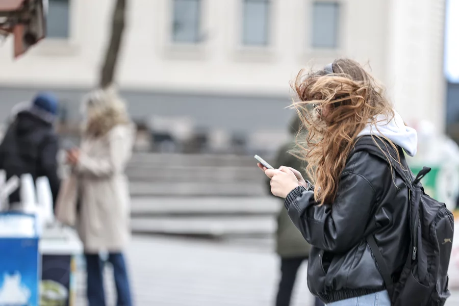 Hızı saatte 40 kilometreye kadar ulaşan rüzgarda vatandaşlar yürümekte zorlandı.