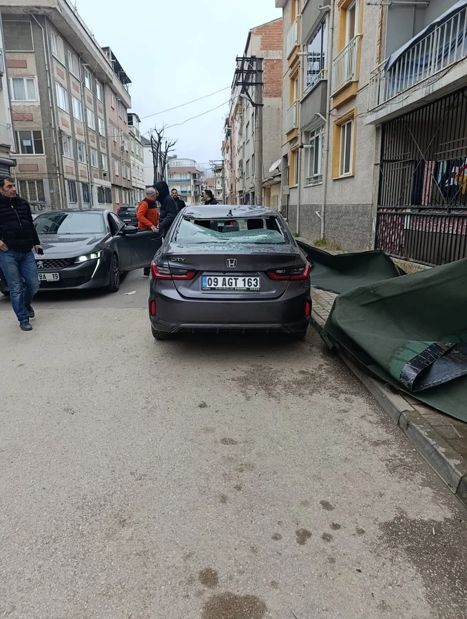 Edinilen bilgilere göre, 3 katlı apartmanın çatısında bulunan şıngıl, şiddetli lodosun etkisiyle yerinden koparak uçtu. Savrulan şıngıl, sokakta park halinde bulunan otomobilin üzerine düştü.